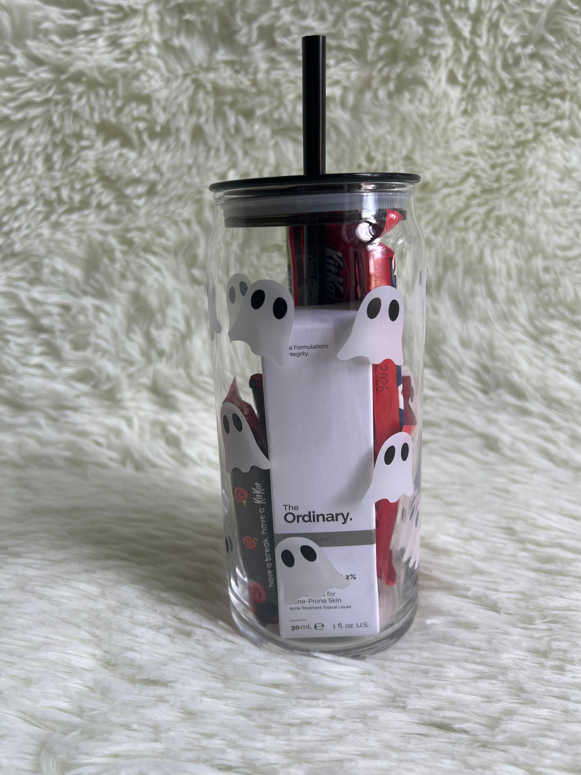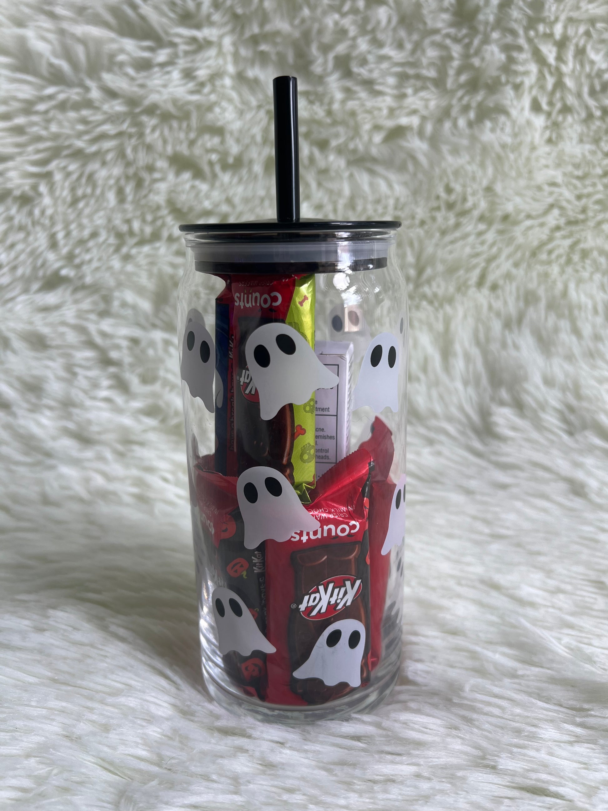 - Aesthetic Ghost Glass Mug (20 oz): Your new favorite mug for cozy lattes or spiced cider. This minimalist, ghost-themed glass features a reusable, contrasting straw, making every sip an aesthetic moment.